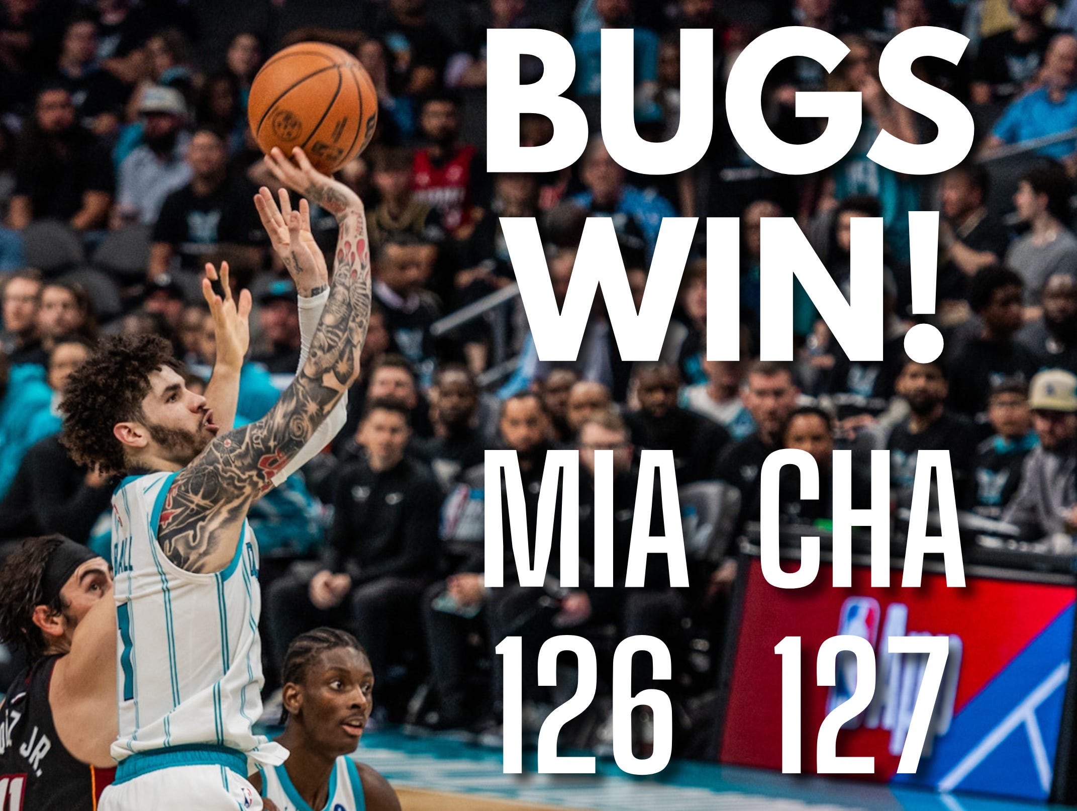 LaMelo Ball made a driving layup with 4.7 seconds remaining to lift the Charlotte Hornets past the visiting Miami Heat for a dramatic 126-127 victory at Spectrum Arena Tuesday evening, completing an improbable comeback from a six-point deficit with under a minute and a half left in regulation. Ball delivered a spectacular overall performance for the Buzz, notching a double-double with 30 points and 10 assists despite shooting only 12/31 from the field and a dismal 2/16 from 3-point territory. Miles Bridges poured in an efficient 28 points on 10/18 shooting, Brandon Miller scored 23 points despite early foul trouble, and Coby White provided his usual spark off the bench with 19 points for Charlotte, including 14 points in the final four minutes of the 3rd quarter.