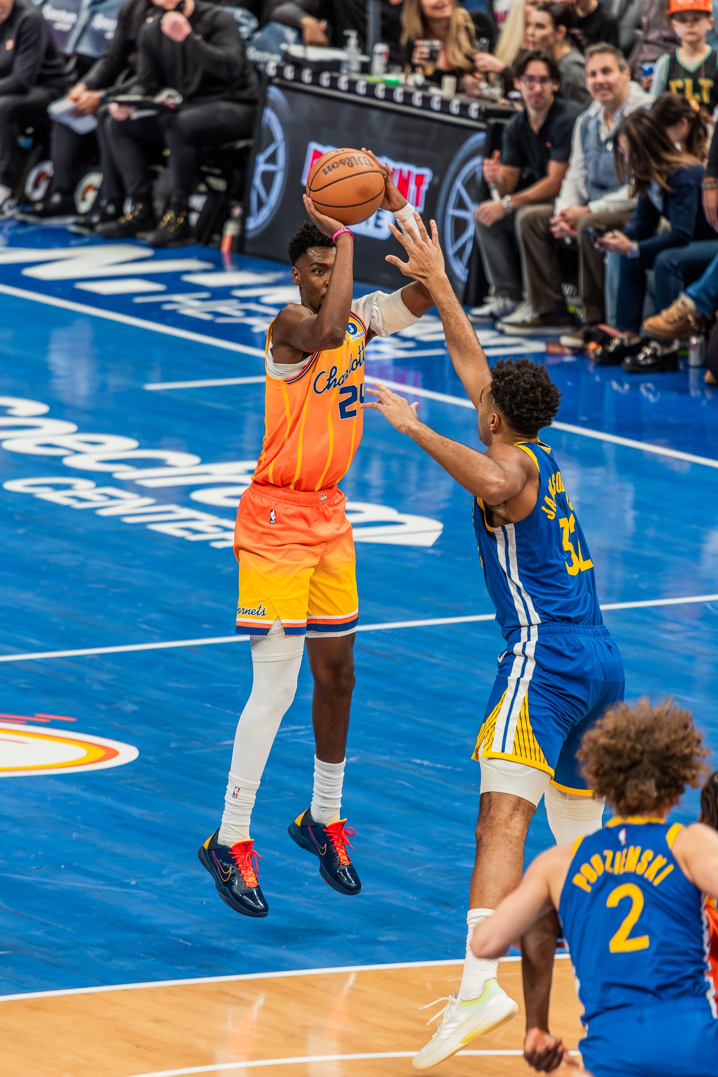 The second quarter featured some lights-out shooting by both squads. Golden State shot 14/20 (70%) from the field in the quarter, including 8/12 from long-distance and a four-point play from Curry. Charlotte nearly kept pace with 34 points of their own, including 11 of Brandon Miller’s 19 first-half points, but the Warriors went into the locker room with a 69-64 halftime lead on the back of 60% shooting and 13 made three-pointers.
